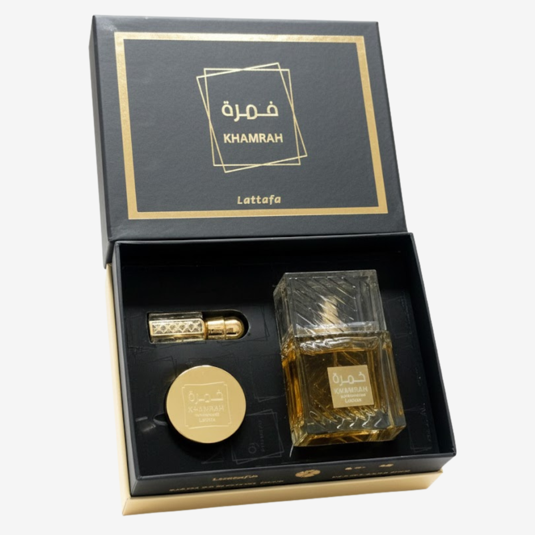 Khamrah Gift Set by Lattafa – Luxury Unisex Perfume & Accessories Set