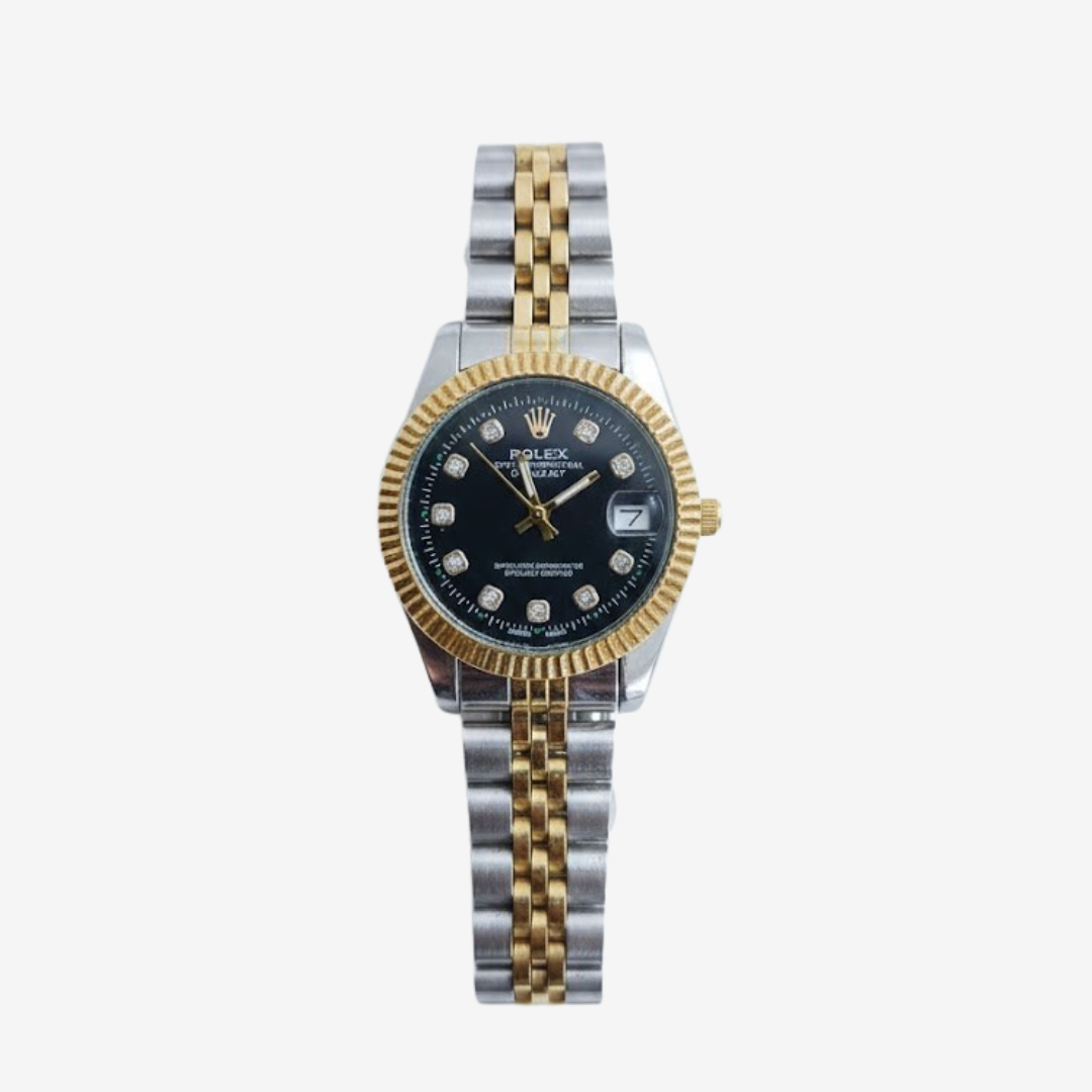 Rolex Datejust High Quality Watch – Two Tone Stainless Steel, Black Dial with Diamond Markers