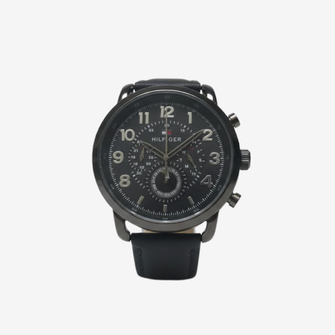 Tommy Hilfiger Brigs Men's Watch , 44mm Black Dial & Black Suede Leather Strap – Mirror Edition