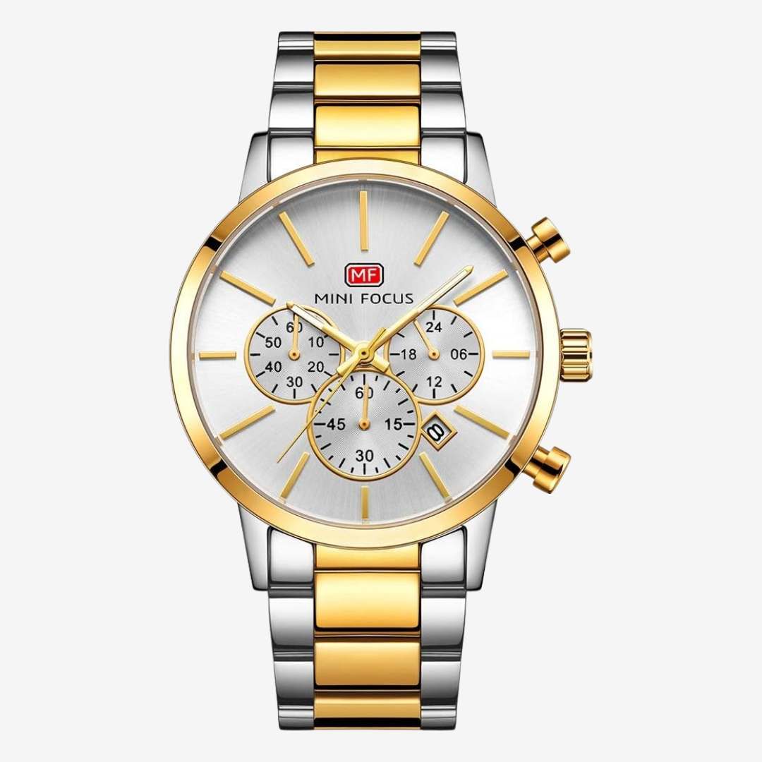 Mini Focus Men’s Watch MF0294G – 44mm White Dial Silver Gold Stainless Steel Original DescriptionStep...