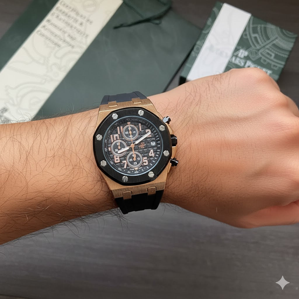 Step up your style with the Audemars Piguet Royal Oak Offshore Chronograph Men's Quarters Watch – High Quality. Featuring a bold design, a comfortable rubber strap, and precise chronograph functions, this watch blends luxury with everyday functionality. Perfect for both formal and casual occasions, its striking appearance and durable build make it a statement piece that elevates any outfit.