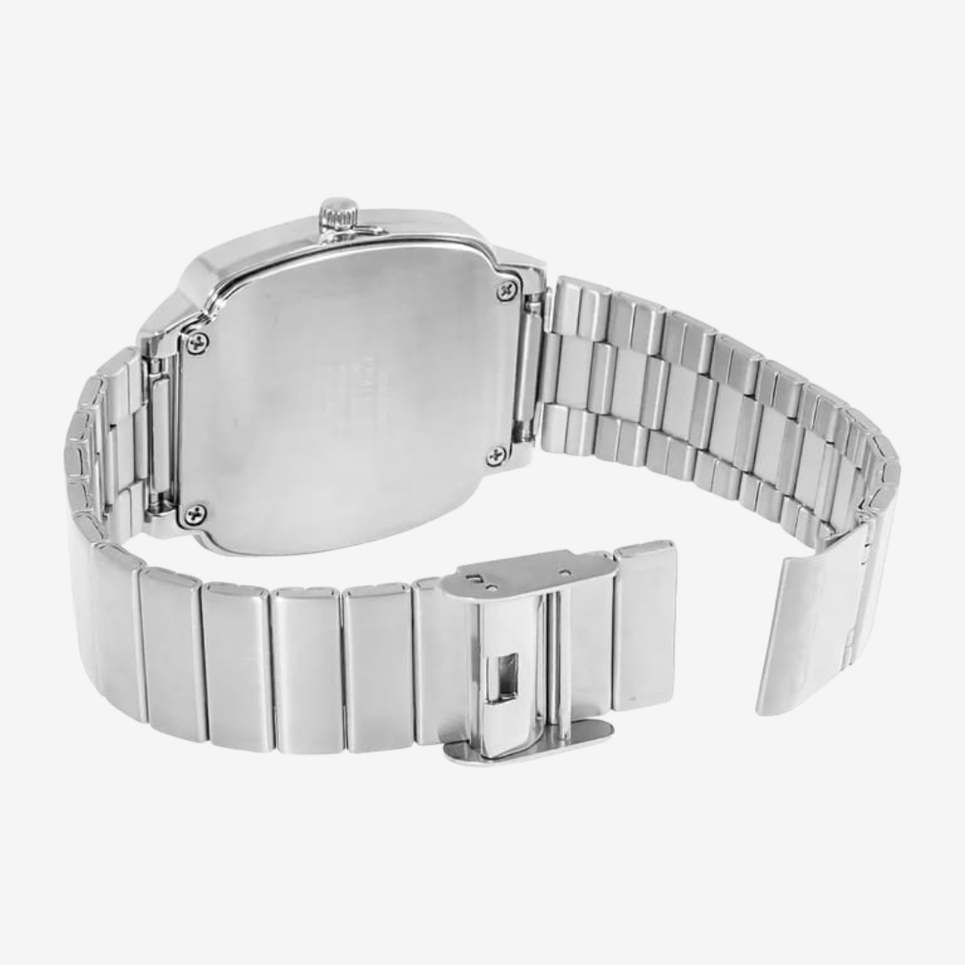 The Casio Unisex Quartz Watch delivers timeless elegance with a touch of vintage charm. Featuring a sleek square case, white dial, and a durable silver stainless steel bracelet, this watch is designed for both men and women who appreciate classic style with modern reliability. The scratch-resistant glass ensures durability, while the precise quartz movement guarantees accurate timekeeping. A practical date display at 3 o’clock adds everyday convenience.