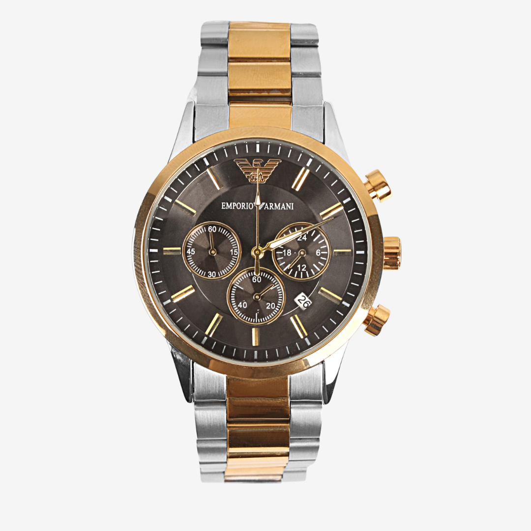 Emporio Armani Men’s Watch 44mm Silver & Gold with Black Dial – Mirror Edition