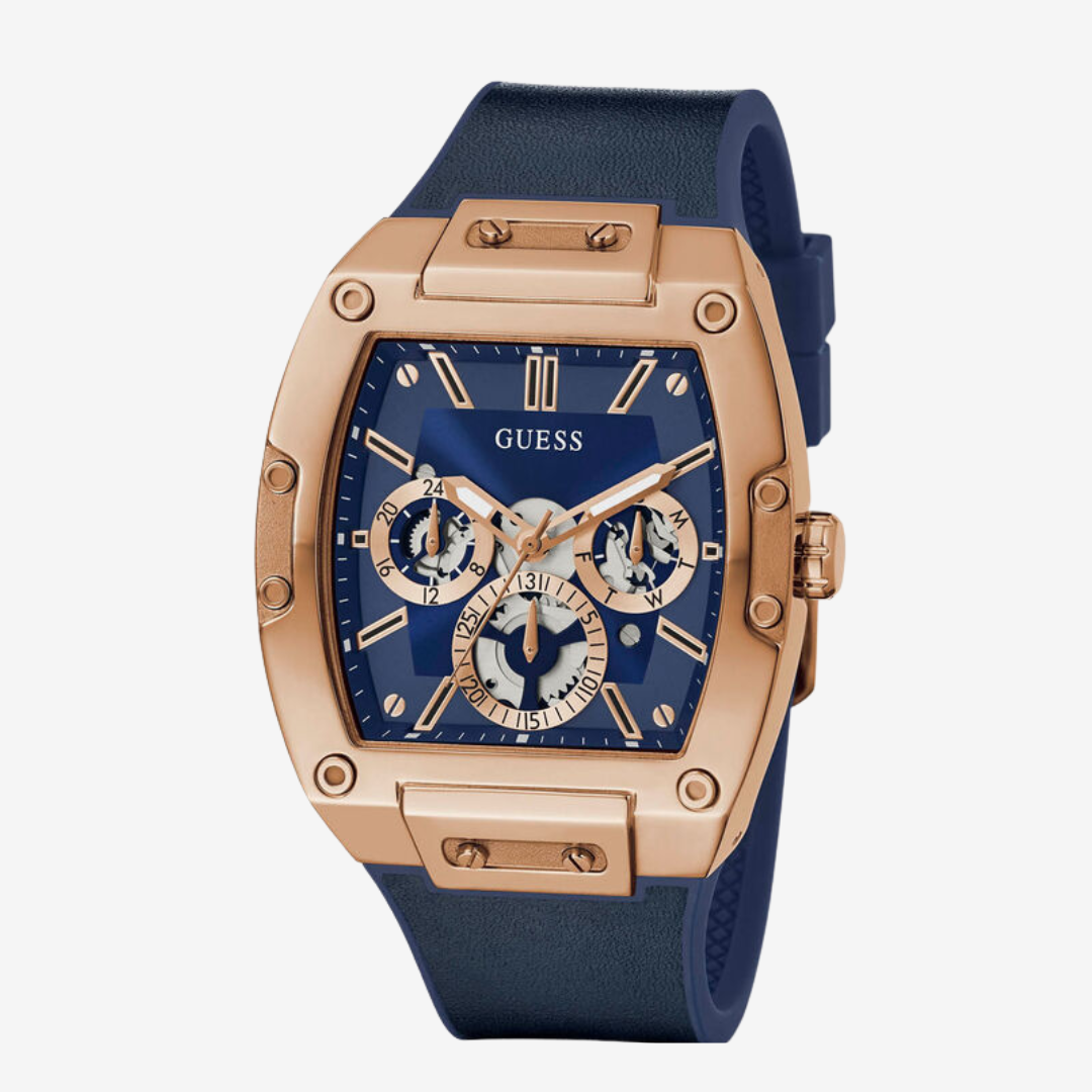 Elevate your style with the GUESS GW0202G4 Men’s Watch Mirror Original. Featuring a 43mm tonneau-shaped diamond dial, this watch combines modern fashion with luxurious details for a standout everyday look.