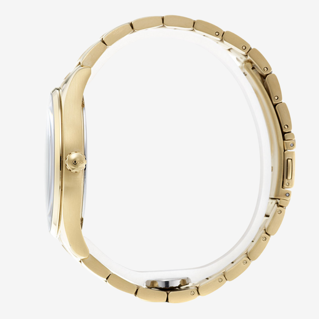 Bracelet Material: Gold-tone stainless steel with butterfly closure