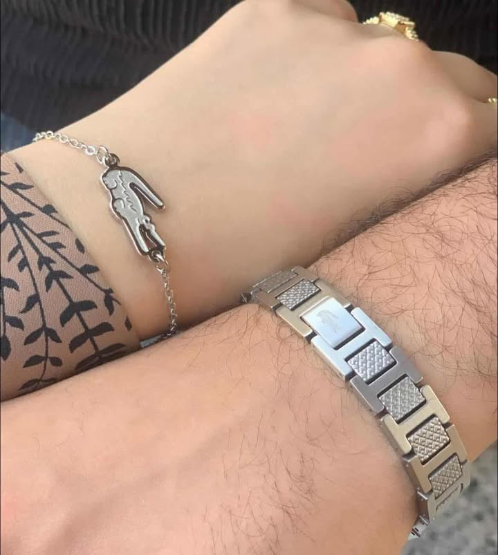 The men’s bracelet features a bold, masculine design engraved with the iconic Lacoste crocodile logo, while the women’s bracelet offers a delicate and elegant look that complements any outfit. Together, they symbolize harmony, elegance, and lasting connection.