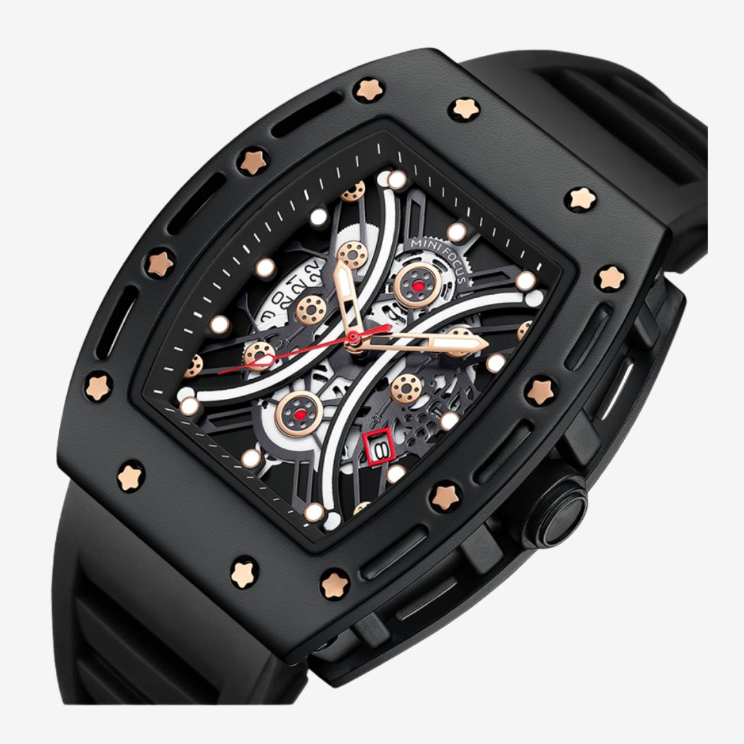 Mini Focus Men’s Watch MF0420G – Black Casual Analog, Metal & Rubber Strap, Mirror Original