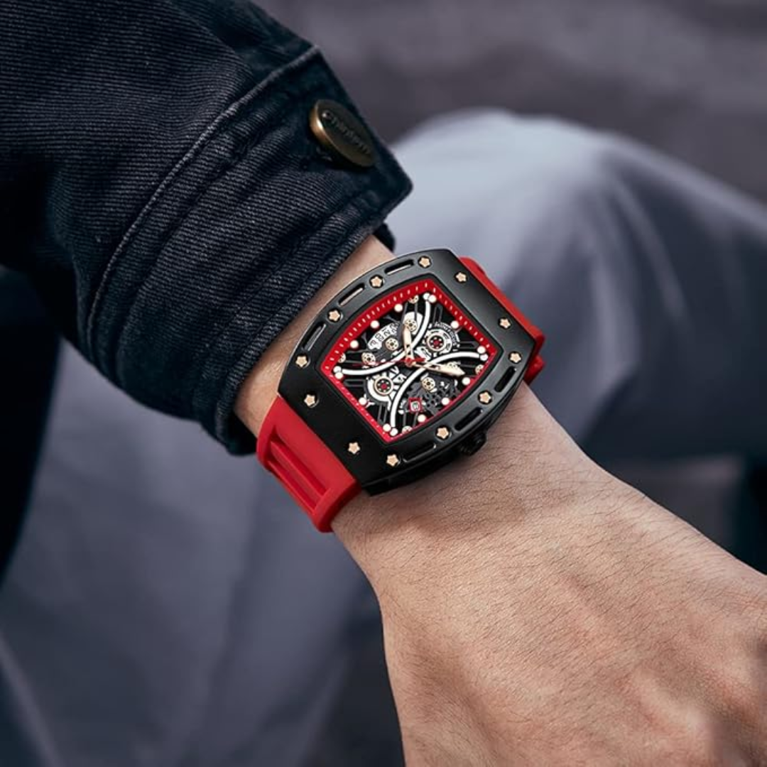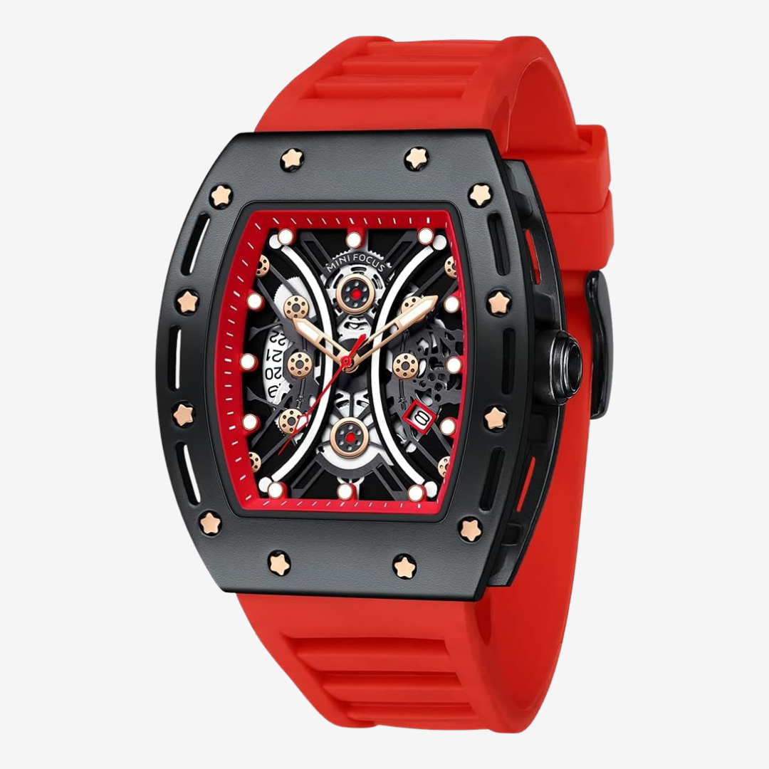 Its vibrant red strap and modern design make it a statement piece for any outfit. The lightweight rubber band ensures comfort for all-day wear, while the accurate quartz movement keeps you on time. Ideal as a gift or for personal use, this watch adds a touch of sporty sophistication to your wrist. -