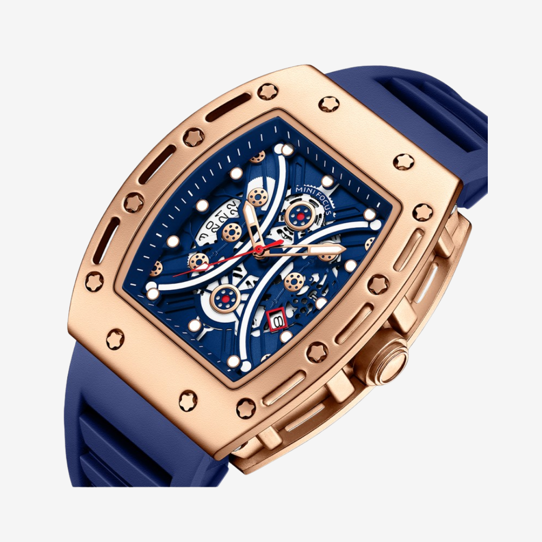 Discover the bold, athletic style of the Mini Focus MF0420G Men’s Watch. Built with a large 46mm case and a durable blue rubber strap, this sporty timepiece blends comfort with modern design. Featuring precise quartz movement, a multifunction chronograph dial with date display and stopwatch, plus splash resistance, it’s the perfect everyday companion for men on the go.