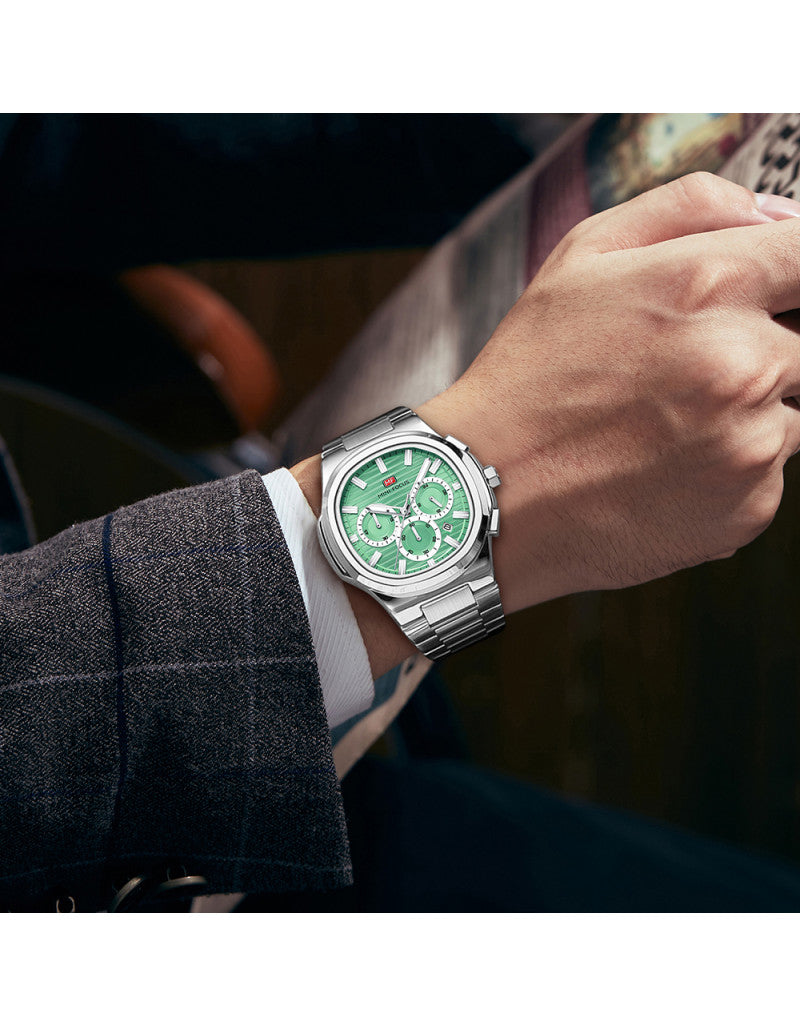 The Mini Focus MF0610G Original Men’s Watch features a bold green dial with luminous hands for easy time reading in low-light conditions. Crafted with a stainless steel case and stainless steel band, this watch offers durability, comfort, and a modern masculine look.