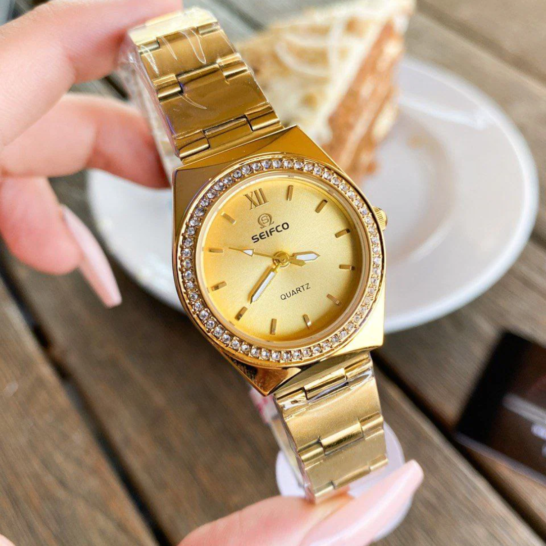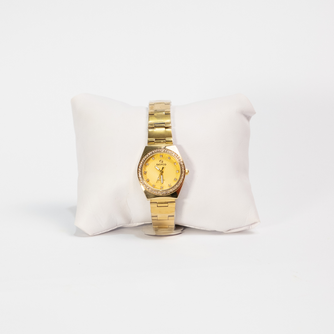 Seifco Crystal Stones Watch 36 Gold Stainless Gold Dial Original